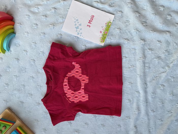 teeshirt manches courtes prune impression éléphant devant 3 mois obaibi ouverture totale au dos  - photo numéro 1