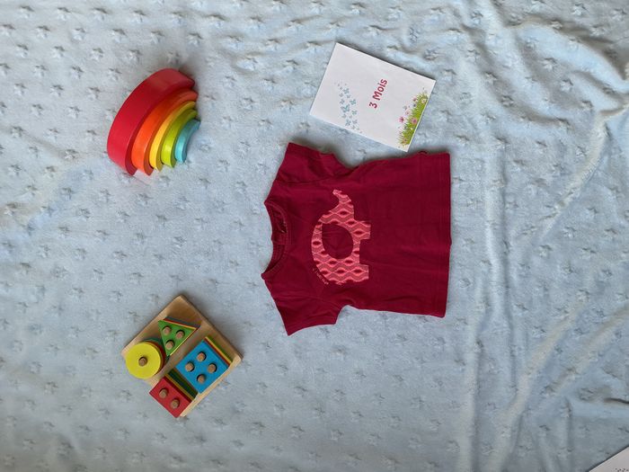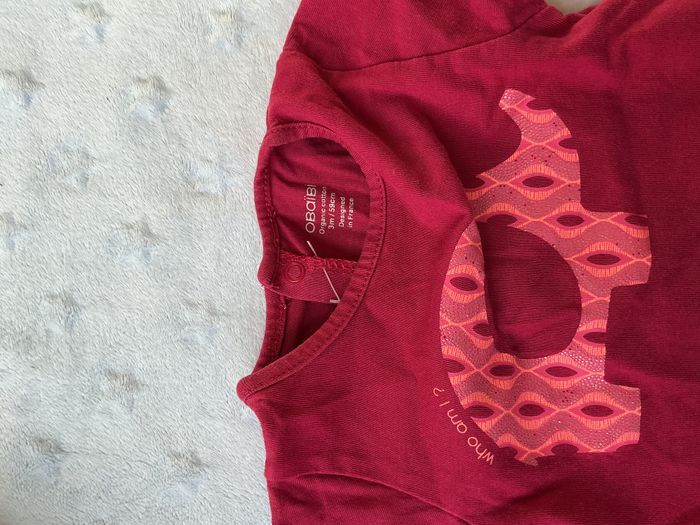 teeshirt manches courtes prune impression éléphant devant 3 mois obaibi ouverture totale au dos  - photo numéro 6