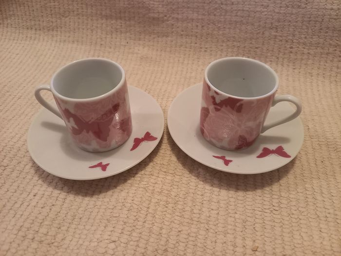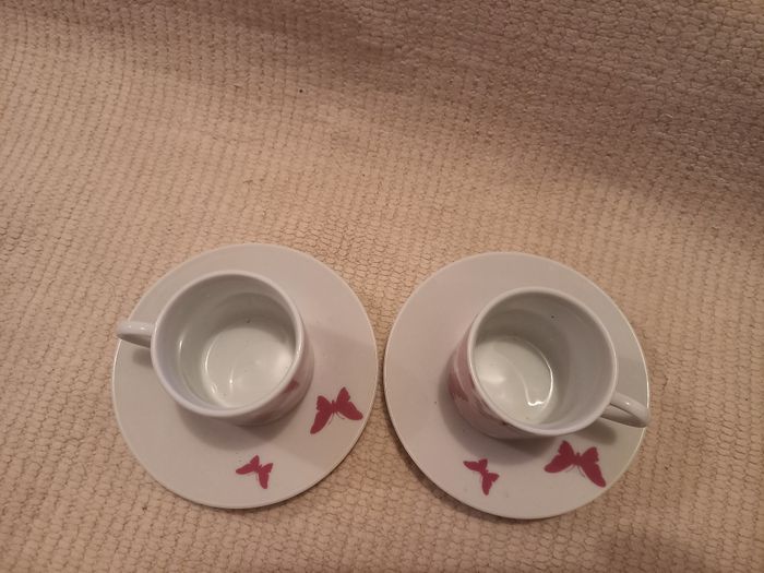 ☕🦋 Lot de 2 tasses à café avec coupelles – décor papillons roses – AFIBEL 🦋☕ - photo numéro 1