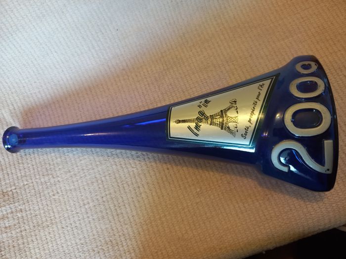 Magnifique bouteille vide en verre bleu cobalt, au design élégant et original en forme de trompette. Édition collector 2000, arborant une étiquette stylisée avec la Tour Eiffel — parfaite pour les amateurs de beaux objets, de décoration ou de collections de bouteilles rares ! 🔹 Détails : Verre bleu intense, brillant et en excellent état Marquages “Rheinhessen 2000” et “L’image d’un” visibles et nets Idéale pour une déco vintage, un bar à vin, ou comme objet de collection ✨ Une pièce unique qui ne passe pas inaperçue sur une étagère ! 📦 Envoi soigné et bien protégé