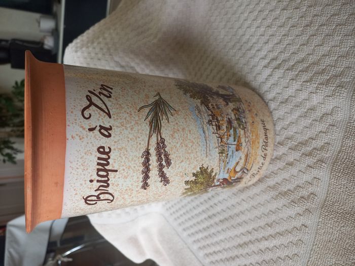 olie brique à vin artisanale en terre cuite signée Le Petit Potier, modèle "La Partie de Pétanque". Parfait pour conserver vos bouteilles de vin dans les meilleures conditions tout en apportant une note provençale et chaleureuse. 📏 Dimensions approximatives : Hauteur : 21 cm Largeur extérieure : 13,5 cm Largeur intérieure : 11 cm 🧱 Très bon état. 📩 N'hésitez pas si vous avez des questions !