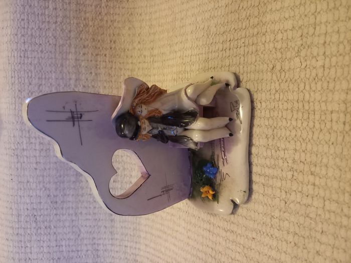 💖 Figurine en porcelaine Zampiva, représentant un couple amoureux assis, fabriquée en Italie. Une scène tendre et symbolique : le couple est assis devant un cœur découpé dans le mur, évoquant l’amour et l’union. ✔️ Porcelaine peinte à la main ✔️ Finition brillante ✔️ Fabrication italienne ✔️ Très bon état 🎁 Idéale comme cadeau pour un couple heureux : jeunes mariés, anniversaire de couple, Saint-Valentin ou simplement pour célébrer l’amour. 📏 Dimensions : Largeur : 9,5 cm Hauteur : 11 cm Profondeur : 6,5 cm 📦 Envoi soigné 💬 Disponible pour toute question ou photo complémentaire