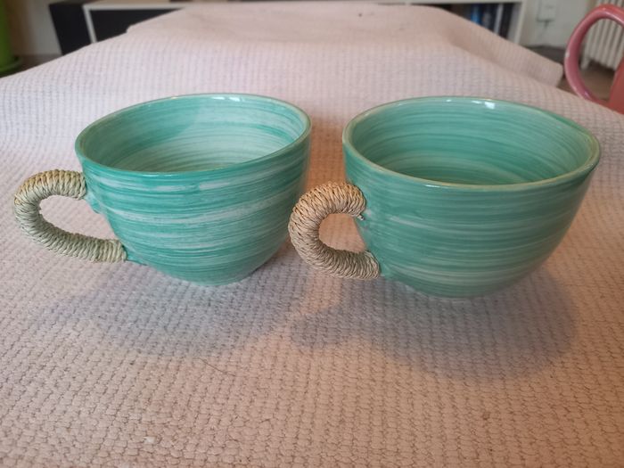 ☕💙 Lot de 2 mugs bleus – anse tressée – très bon état 💙☕ - photo numéro 1