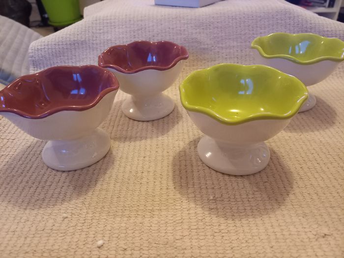🌸 Lot de 4 coupelles en forme de fleur, élégantes et décoratives. Extérieur blanc, intérieur coloré : 2 vert anis et 2 violet, pour une touche de gaieté sur la table. ✔️ Neuf (jamais utilisées) ✔️ Forme fleur originale ✔️ Jolies couleurs contrastées ✔️ Idéales pour apéritifs, desserts, sauces Un ensemble à la fois pratique et décoratif, parfait pour égayer une table ou pour offrir 🎁 📦 Envoi soigné 💬 Disponible pour toute question ou photo complémentaire 😊