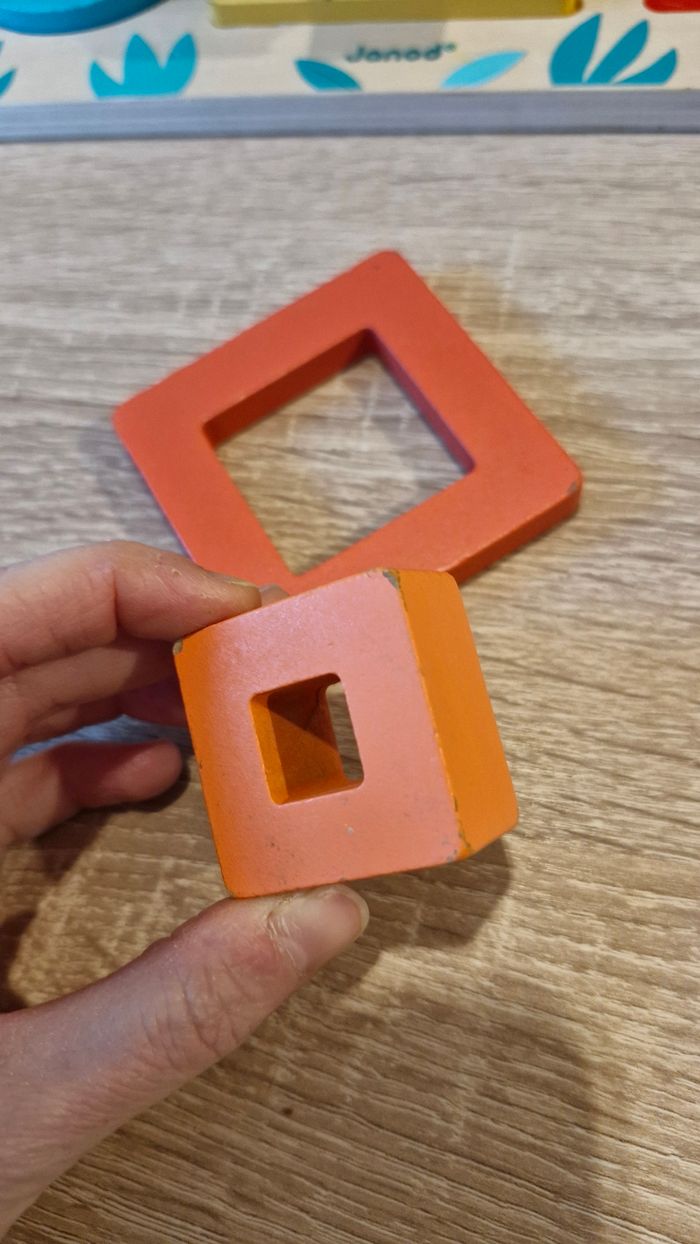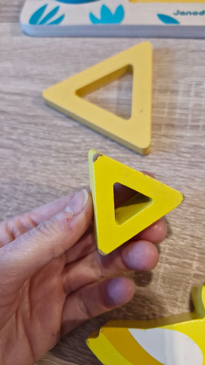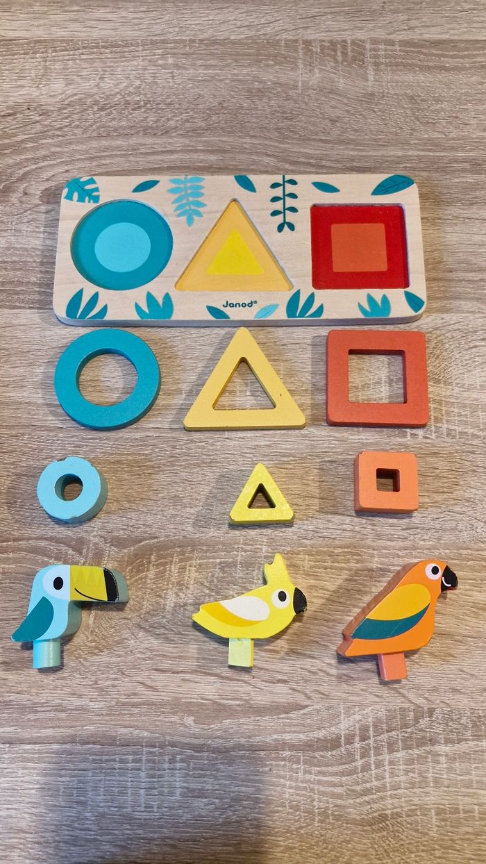 Apprentissage des formes (rond, triangle et carré) et des couleurs. Coordination et motricité fine. Jeu d'encastrement en bois issu de forêts gérées durablement. Peinture à l'eau. Parfait à partir de 12 mois. Bon état général. Défauts visibles sur les photos mais fera, j'en suis sûre, le bonheur d'un autre enfant.