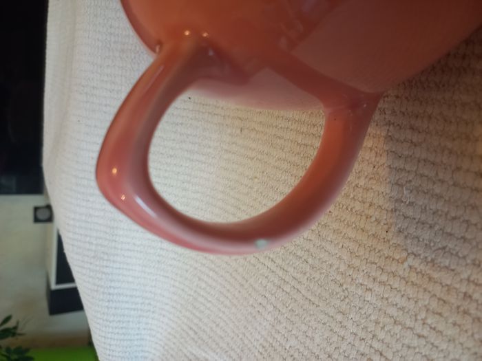 Craquez pour cette charmante théière rose, au style doux et élégant, parfaite pour accompagner vos moments thé ou décorer joliment une étagère. ✨ Très bon état général ✨ Belle couleur rose, féminine et intemporelle ✨ Pratique et décorative 🔎 À noter : un petit éclat sur l’anse, qui n’enlève rien à son charme ni à son utilisation (voir photo). 🍵 Idéale pour les amateurs de thé, les ambiances cocooning ou les collections de vaisselle délicate.
