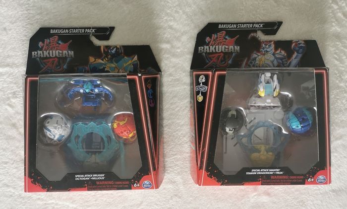 1 arène avec zone de combat, obstacles et zones d'exposition, 1 Bakugan Special Attack, 1 anneau, 1 lanceur et 4 cartes. L'arène mesure plus de 50 cm de long. Avec des supports de chaque côté pour positionner ses billes Bakugan, ses cartes et partir au combat. - Pack Spécial Attack bruiser : Octogan, Nillious 2 Bakugan + 1 Bakugan Special Attack, 1 anneau de coat, 1 carte Lanceur, 3 cartes Personnage, 1 carte Special Attack, 3 cartes de Coat, 2 cartes Portail et une règle de coat. - Pack Spécial Attack Mantid : Titanium Dragonoid Trox 2 Bakugan + 1 Bakugan Special Attack, 1 anneau de coat, 1 carte Lanceur, 3 cartes Personnage, 1 carte Special Attack, 3 cartes de Coat, 2 cartes Portail et une règle de coat. #stephanie89240jouet #stephanie89240toupie #bakuganstarterpack #bakugan #mantid #octogan #specialattack lotb3