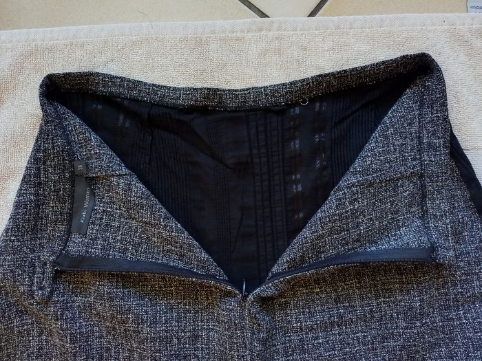 Craquez pour cette jupe élégante et originale, coupe asymétrique ultra tendance ! Très bon état, fermeture zippée + bouton, bouton de secours toujours présent. Matière douce et confortable, idéale pour le bureau ou une sortie chic ✨ 📏 Taille : 38 🧵 Matières : Partie grise : 75% polyester, 25% viscose Partie noire : 36% coton, 27% polyamide, 27% viscose, 6% élasthanne, 4% polyester ✅ Très bon état ✅ Coupe asymétrique élégante ✅ Marque : Kiabi Woman 📦 Envoi rapide et soigné