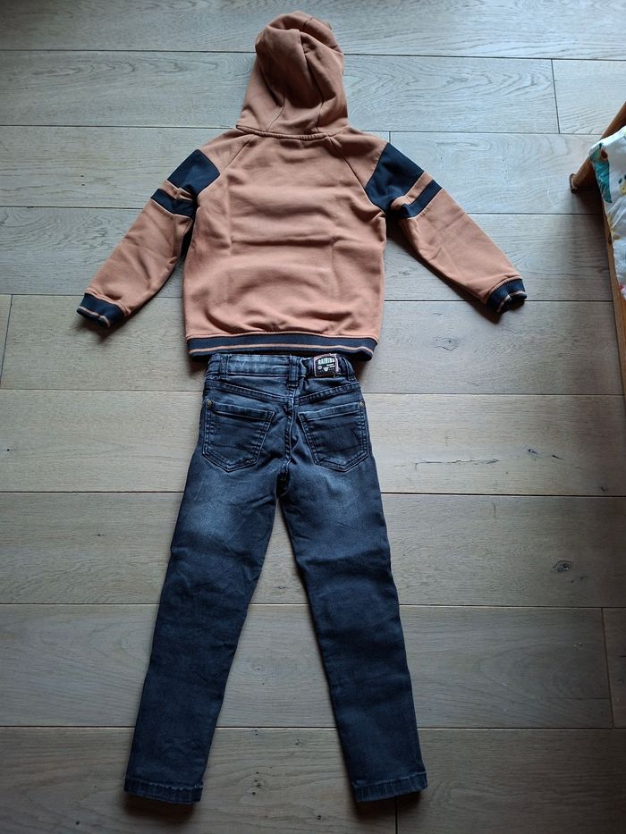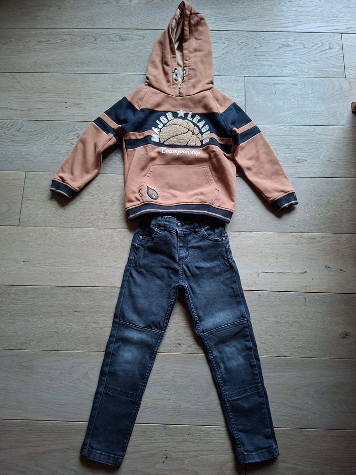 Ensemble Sergent Major comprenant : - 1 sweat-shirt à capuche coloris marron glacé Taille 6 ans/116 cm Matière 78% coton, 22% polyester Et - 1 jean noir coupe skinny Taille 5 ans/110 cm Liens de serrage à la taille Matière 74% coton, 21% polyester, 3% viscose, 2% élasthanne.