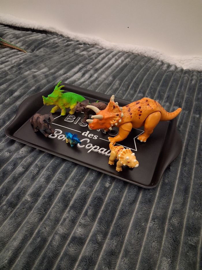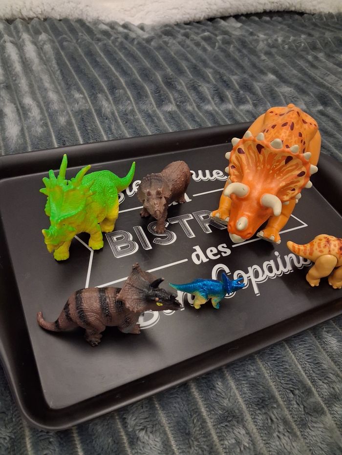 Lot de 6 dinosaures Triceratops et autres en très bon état, de taille et de matériaux différents, marques inconnu N'hésitez pas à me contacter si vous avez des questions 😀