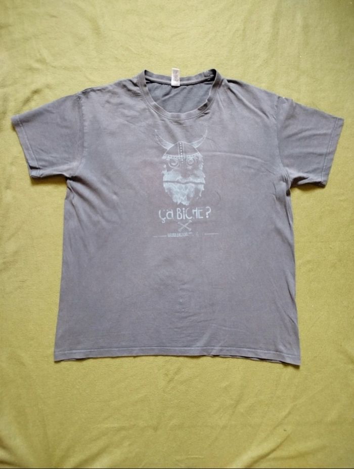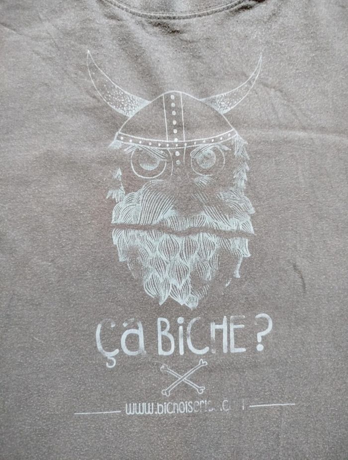 T-shirt gris à l'effigie du Festival ' Les Bichoiseries '. Motif tête de viking. Bonne état général, une petite tache sur l'épaule visible en dernière photo. Sol's , taille XL. G199