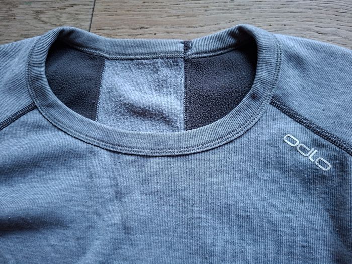 T-shirt technique à manches longues Odlo. Taille XL Matière 100% polyester. Renforts polaires dans le dos et jusqu'aux coudes. Idéal pour les sports d'hiver ou le travail en extérieur.