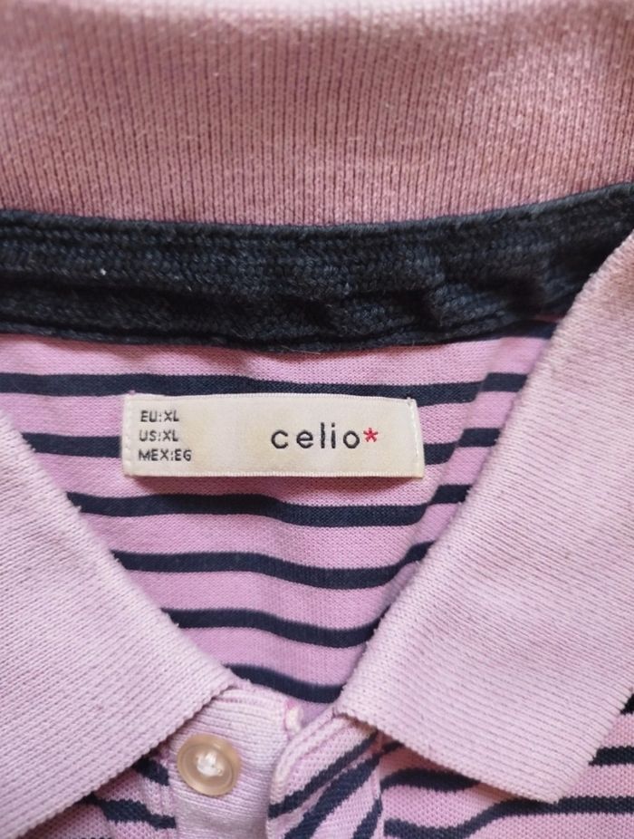 Polo rose à rayures noires. Celio, taille XL. G274
