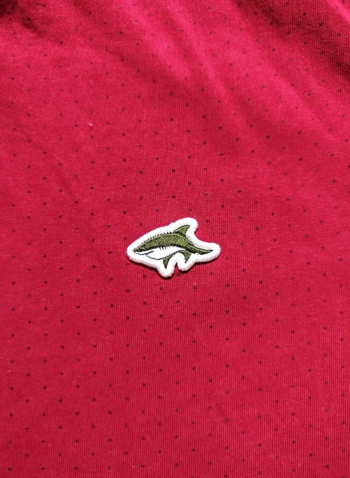 T-shirt bordeaux à pois noirs. Peu porté mais présente 2 accrocs, visibles sur les 2 dernières photos. Le Shark, noté taille XXL mais taille petit. G178