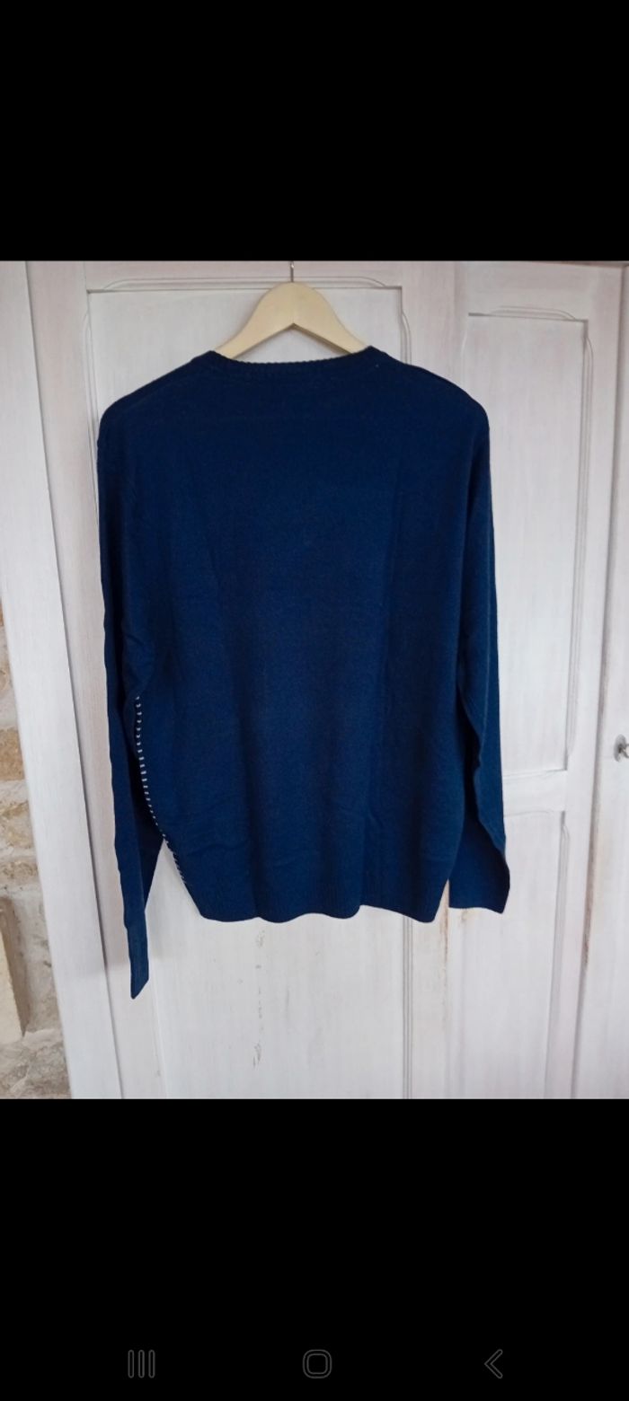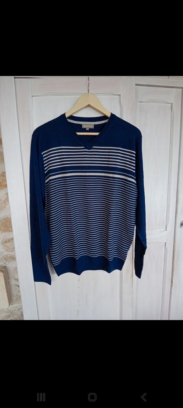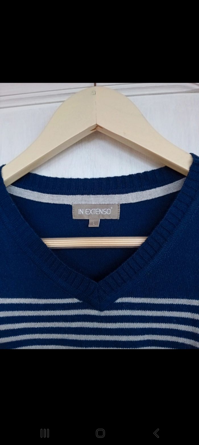 Pull-over à rayures bleu marine et gris col V En coton Taille L Marque In extenso