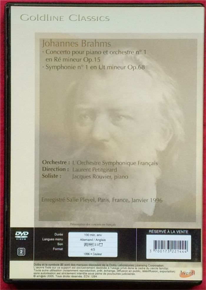 Johannes Brahms 🎬 DVD 🎵 - Concerto pour piano et orchestre n° 1 en Ré mineur Op.15 - Symphonie n° 1 en Ut mineur Op.68 par l'orchestre symphonique français .