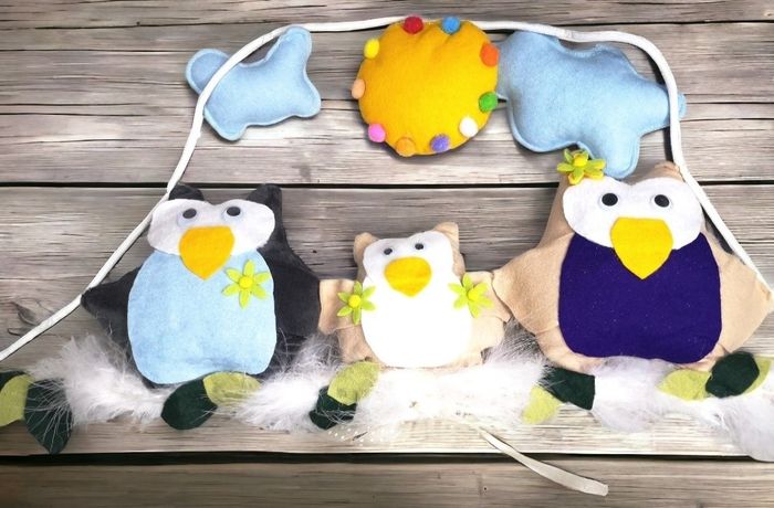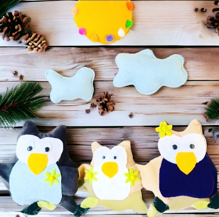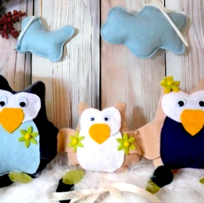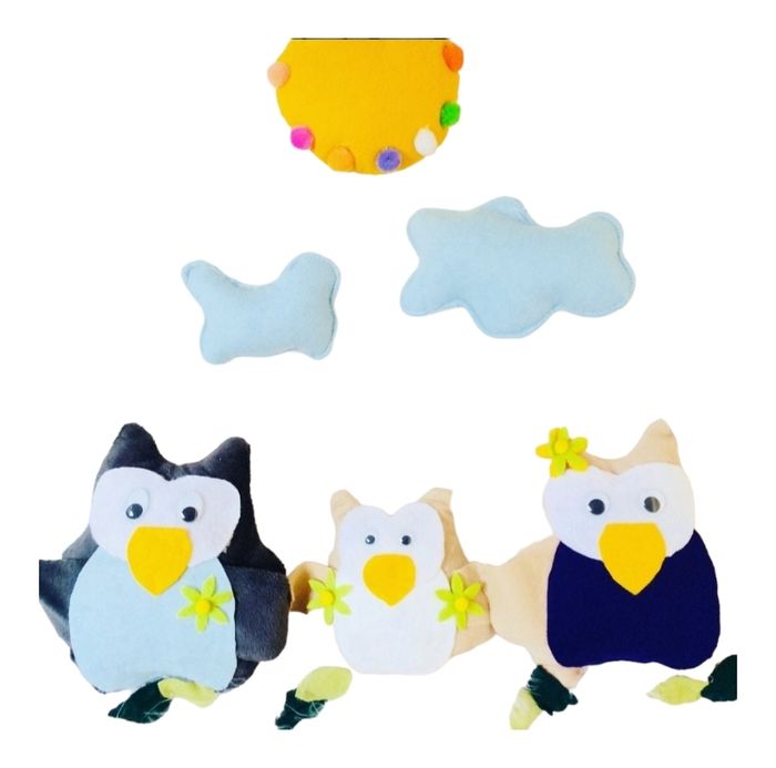 Décoration murale pour chambre bébé/enfant famille de chouettes en polaire sur barre en bois avec soleil nuages feuillage et plumes ✨️ destockage boutique artisanale ✨️ pièce unique ✨️ prix 39.90 € ✨️ envoi rapide, soigné et bien emballé ★ . #déco #décoration #chouette #chouettes #décorationchambre #décorationmurale