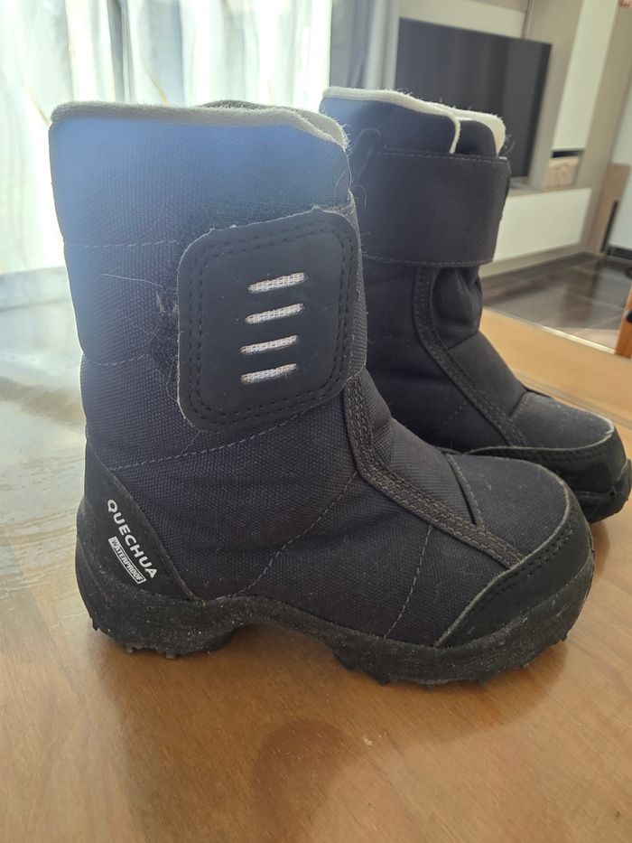 Bottes chaudes et faciles à enfiler grâce à leur ouverture large et au scratch d'ajustement. Bon maintien, et protège bien du froid. Bottes idéales pour la neige. Très peu servi.