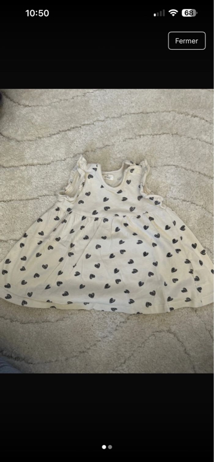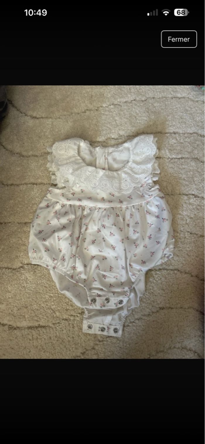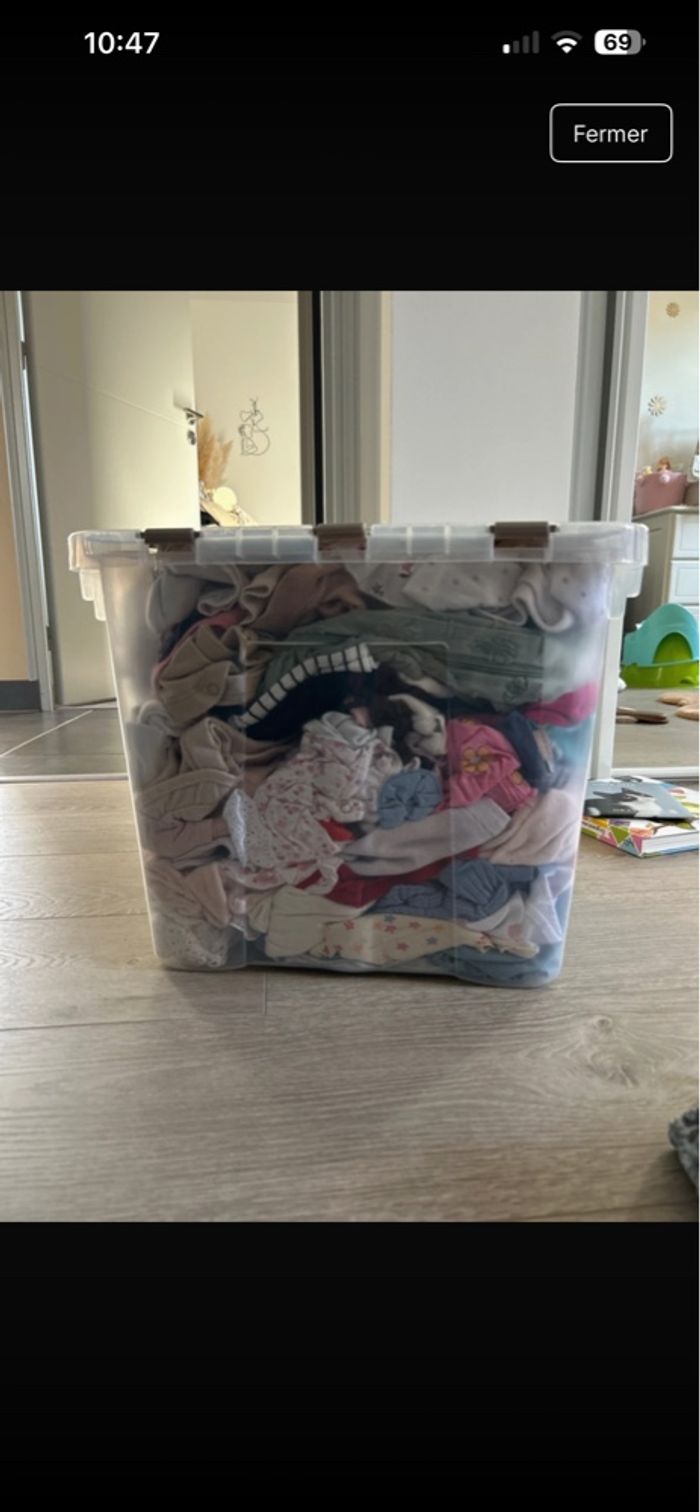 Tout est en très bon état Toutes saisons mais principalement été avec gigoteuse aussi Bodys, robes, legging, tee shirt, bandeau etc.. Il peut y avoir deux trois vêtements 1 mois du 1-3 mois et du 3-6 mois