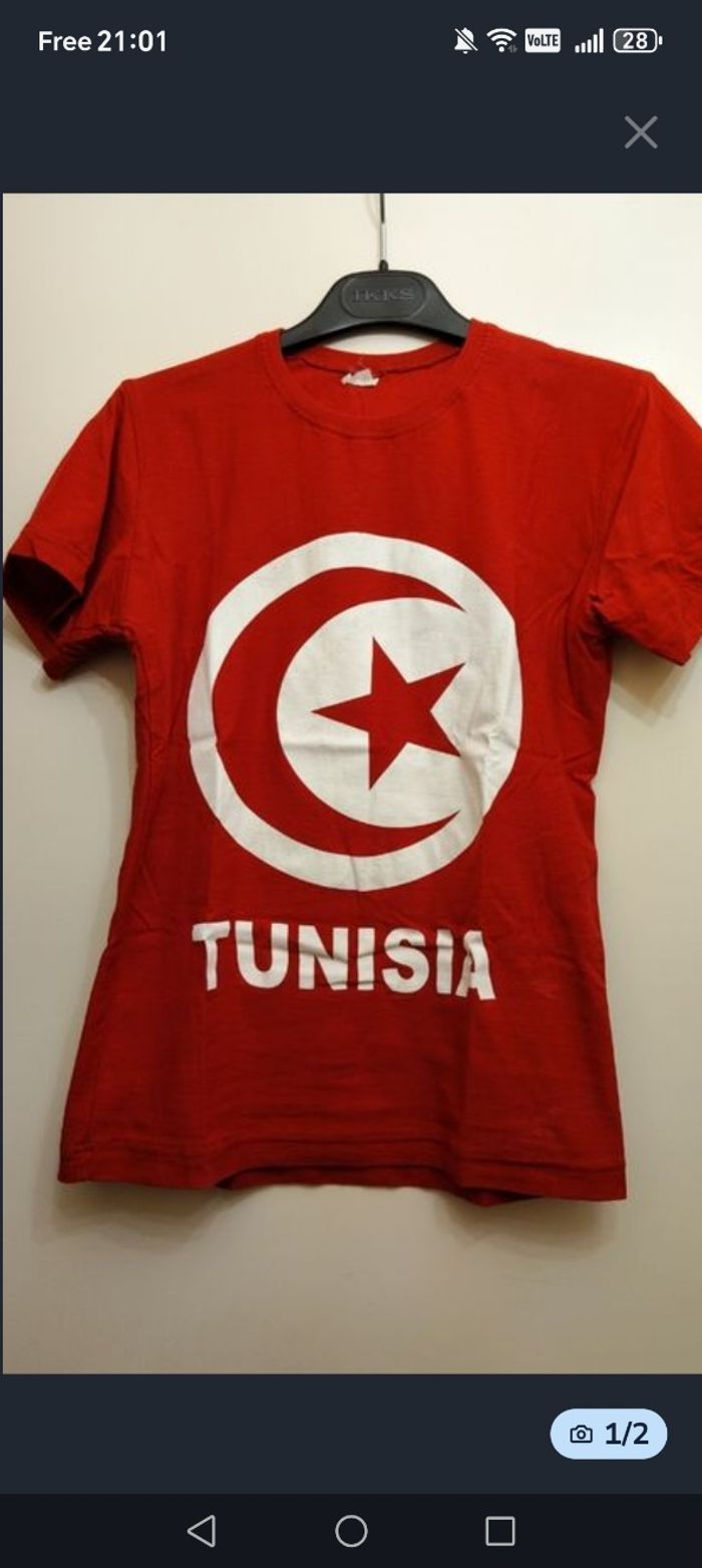 T shirt rouge Tunisie Taille S - - 34 / 36 Mixte Très bon état T shirt, sport, coupe, Tunisie, rouge, mixte, taille 36, taille 34, taille S, 14 ans, 15 ans