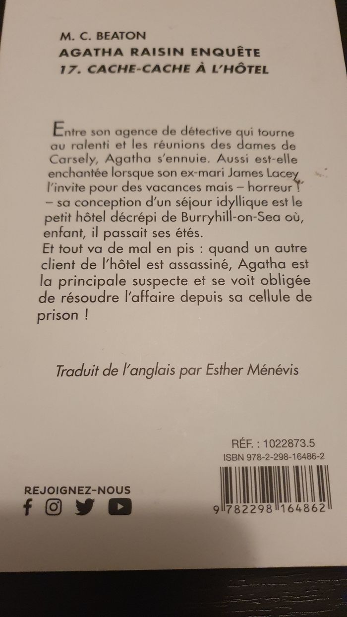 Je vends ce roman policier "Cache-cache à l'hôtel" d'Agatha Raisin, édition brochée