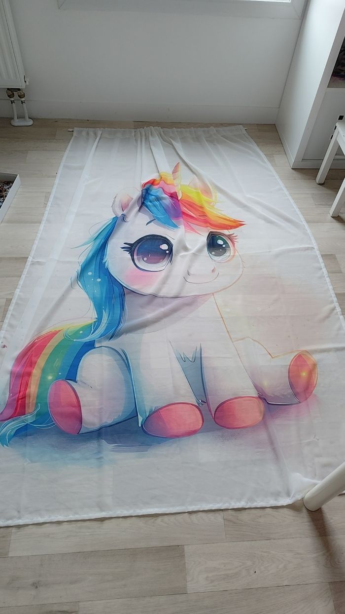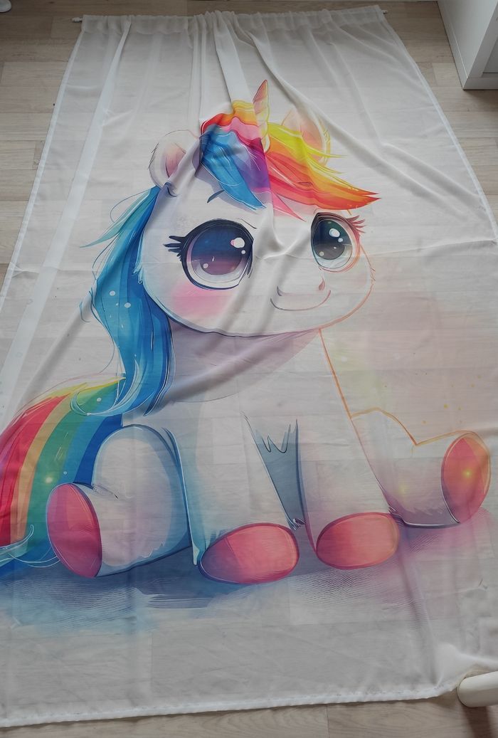 Très joli rideau voilage licorne en très bon état Mesure largeur 132 x hauteur 182