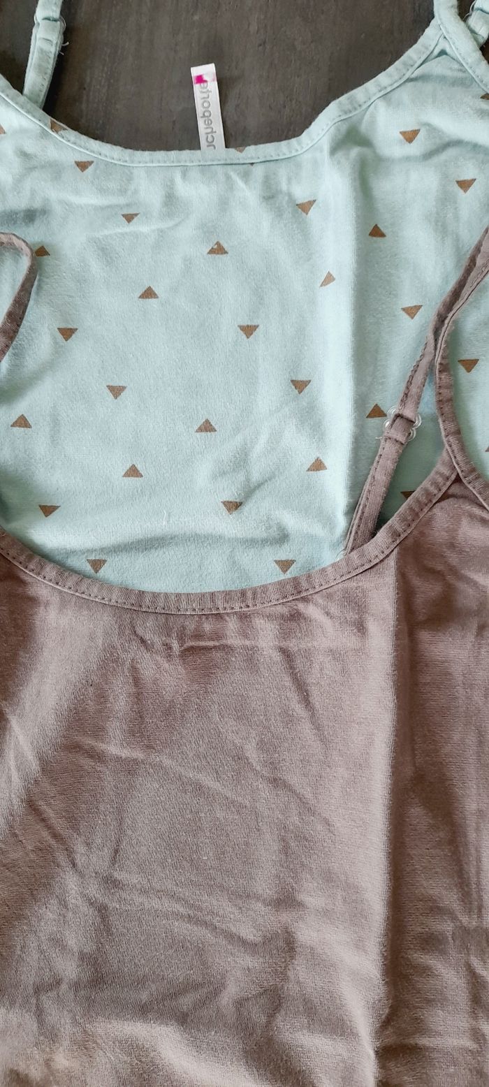 En coton, fines bretelles règlables. Peu porté, le beige et rose eqt neuf.