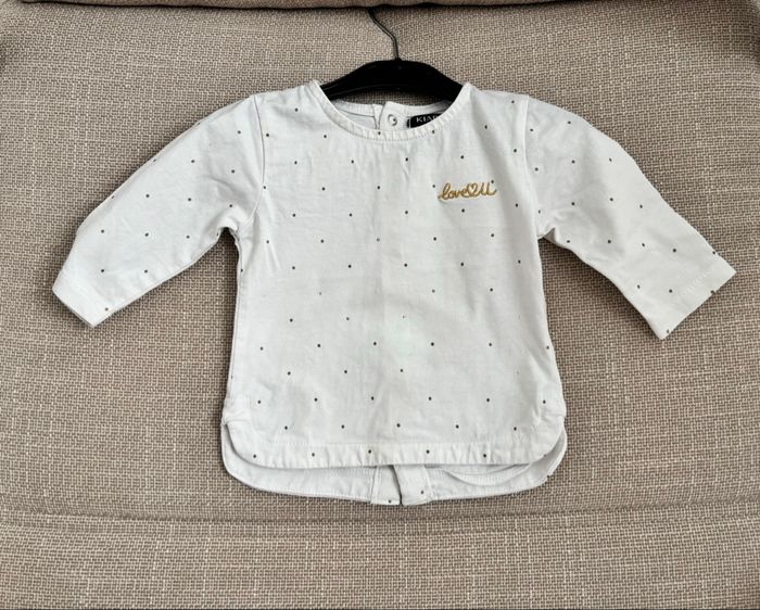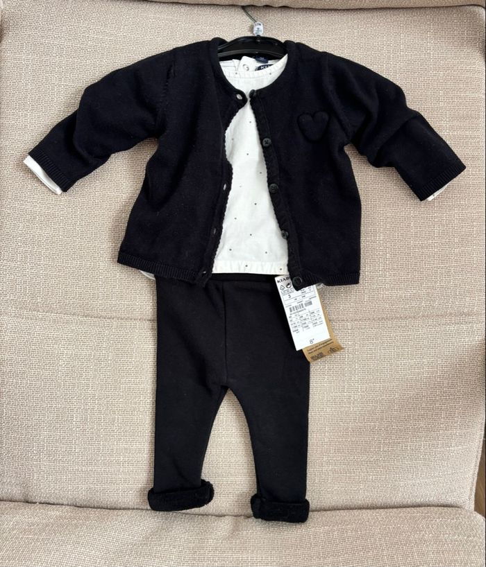 Ensemble bébé fille 3 mois - KIABI - legging chaud (neuf) - hauts blanc à pois , à manches longues - gilet cardigan