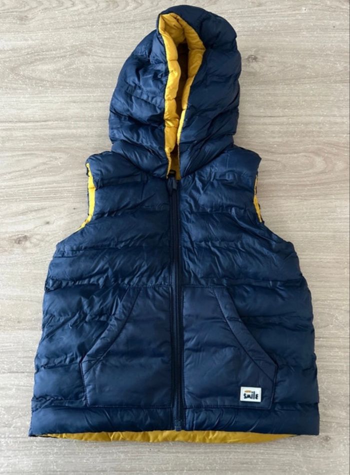 Doudoune sans manches réversible bleu marine et moutarde
