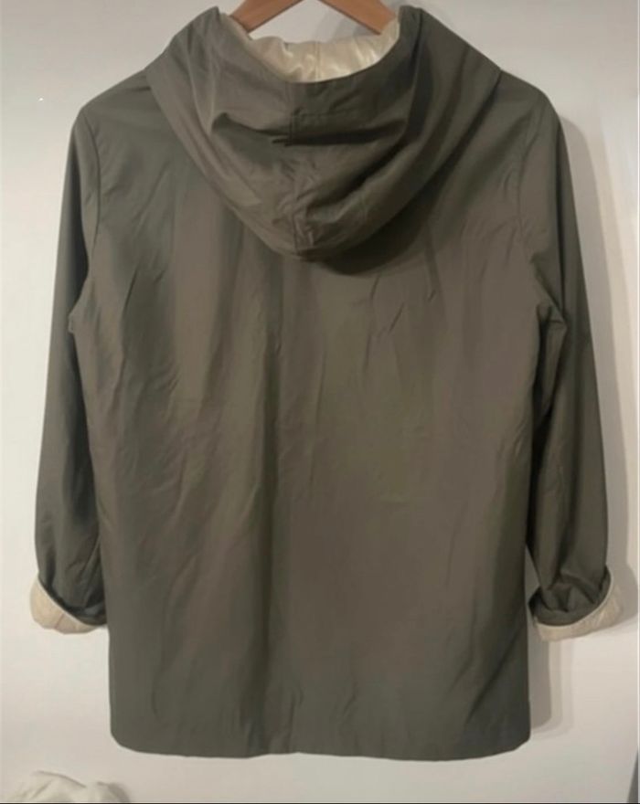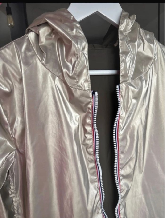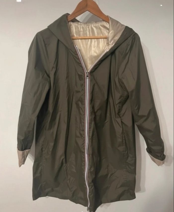 Vends imperméable / coupe-vent chic de la marque Laura Jo Paris. Excellent état .Très peu porté Couleur : Kaki / Doré Taille 46 La fermeture éclair est ornée d'un liserer tricolore. Très léger, parfait pour être porté sur une veste ou un pull.