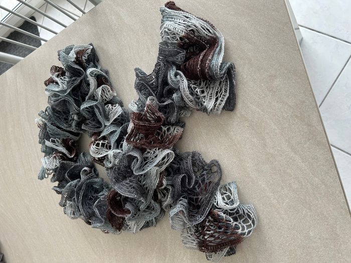 Cette écharpe froufrou vintage mesure 124 cm , faite main neuve maison non fumeur