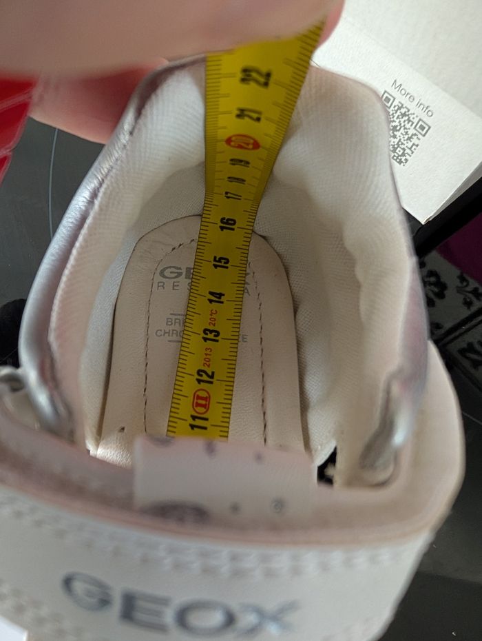 Je vends cette paire de sandales d'été pour fille de la marque Geox, en taille 25. Neuf avec étiquette dans son emballage d'origine. Souoples, semelle souple, mesures sur la photo pour donner des idées. Semelle intérieure en cuir tout doux. Fermeture scratch - Type de produit : Sandales - Univers : Enfant - Marque : Geox - Pointure : 25 - Couleur : Blanc, déco argenté. - Matière : semelle intérieure en cuir. Très belles et confortables. N'hésitez pas à me contacter pour plus d'informations !