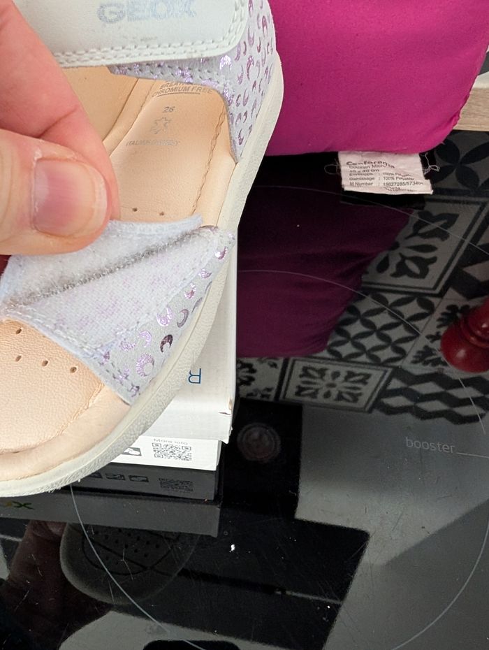Je vends ces sandales d'été pour fille de la marque Geox, en cuir tout doux et souple. Neuf avec étiquette dans son emballage d'origine. Souples, semelle souple, mesures sur la photo pour donner des idées. - Type de produit : Sandales - Univers : Enfant - Marque : Geox - Pointure : 26 - Couleur : Multicolore. Blanc, déco brillant argenté lila plus tôt - Matière : Cuir, autre cuir. Très belles et confortables. De qualité. N'hésitez pas à me contacter pour plus d'informations !