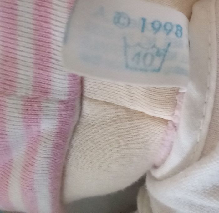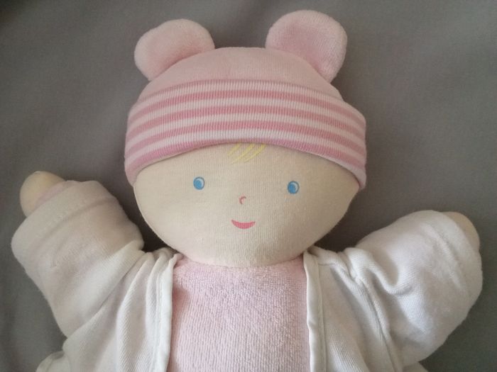Doudou Corolle rose de 1998 les photos font partie du descriptif prix 48€ hors port doudou n'est pas neuf il est d'occasion donc il a des traces d'utilisations couleurs moins toniques , traces d'attaches tissu tiré et de très petites bouloches étiquette nuque présente et en photo il est de 1998 il a 28 ans en 2026 je fais les envois rapides il n'a plus son col et il est vendu seul avec son gilet blanc Son visage est peint il possède un bonnet cousu rose blanc rayé rayures il ressemble lutin pantin marin marine matelo poupée chiffon poupé tissu lapin fille poupée il est en velours ras rose clair 3 petite cheveux dessinés les photos font partie du descriptif la marque Corolle devant est un peu passée/usée voir la photo mes envois sont sécurisés et filmés il possède un gilet blanc en coton Vous achetez le doudou de ces photos et j'en ai un seul en vente il est propre ses yeux sont peints en bleu clair Super vous venez de retrouver votre doudou ou celui de votre enfant ce style de doudou est rare A bientôt pour un achat