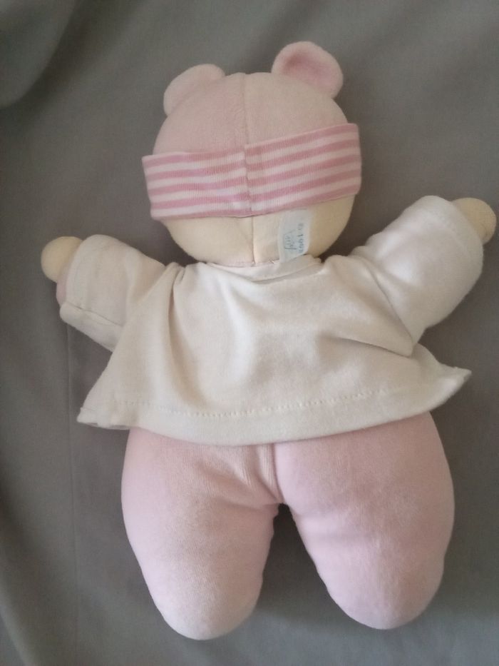 doudou Corolle rose de 1998 poupée chiffon tissu velours ras rayure rayé nref 0170 28 cm 12" absence col d'occasion vendu comme sur les photos - photo numéro 8