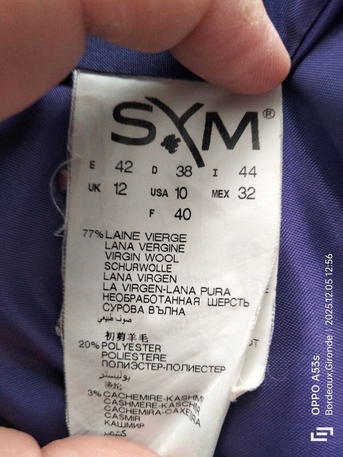 Manteau d'hiver chaud femme en laine. Marque sym en taille 40. Très bon état