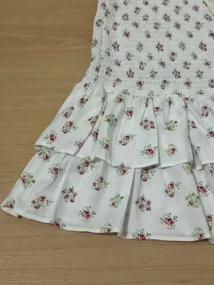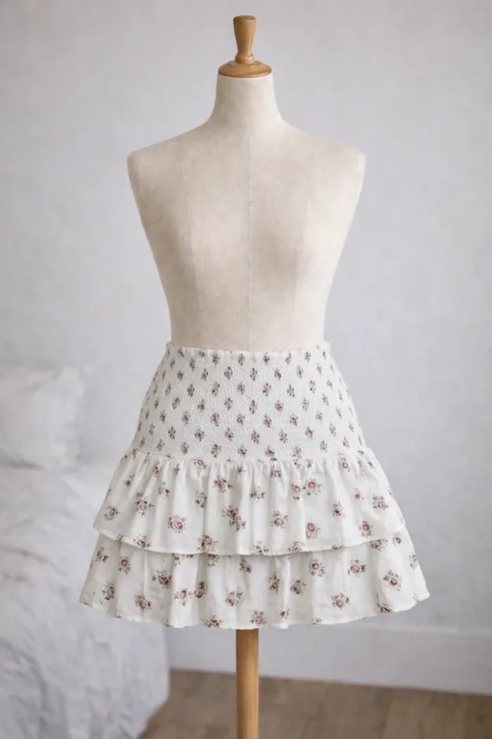 - Magnifique jupe blanche avec des roses - Coupe patineuse avec volants - Jamais portée, encore avec l’étiquette, en parfait état