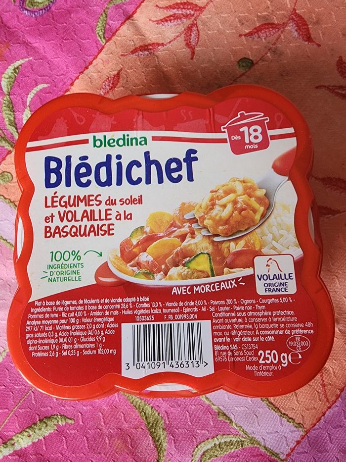 Je vend une assiette repas bebe légumes du soleil et volaille à la basquaise à partir de 18 mois