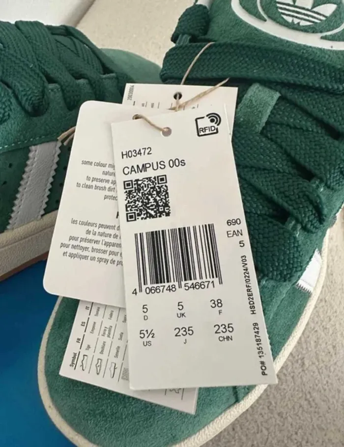 Baskets Campus 00s Originals vertes - Adidas - Neuves - QR Code - Taille 38 - Valeur 120€ - photo numéro 7