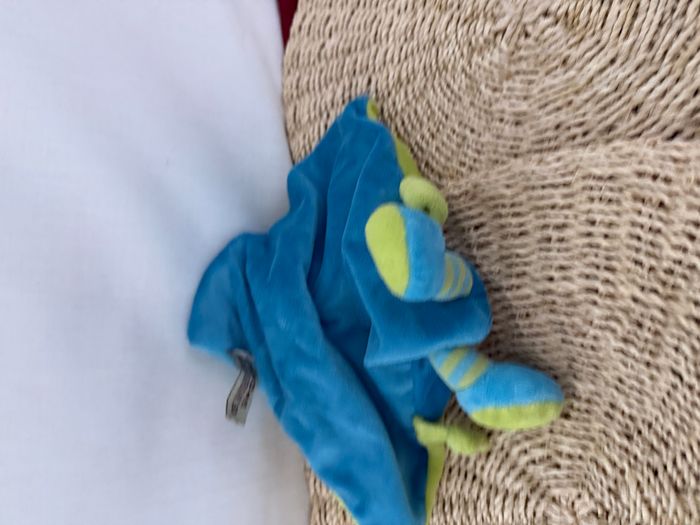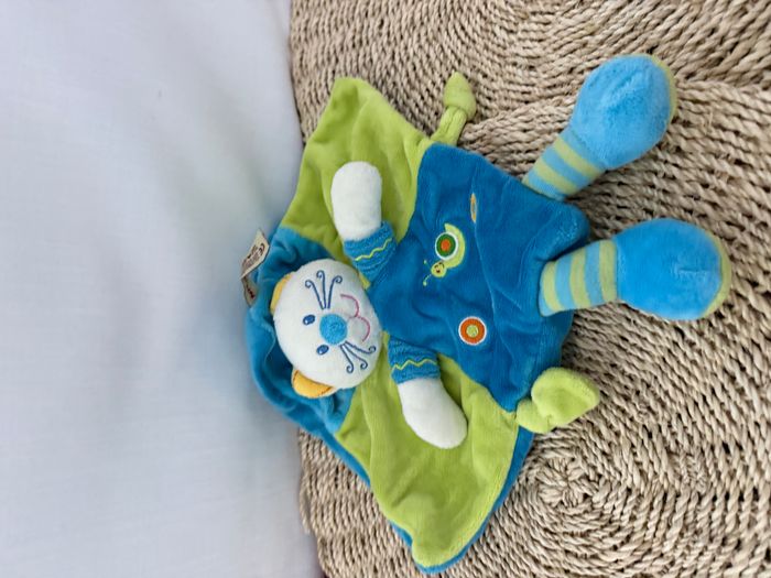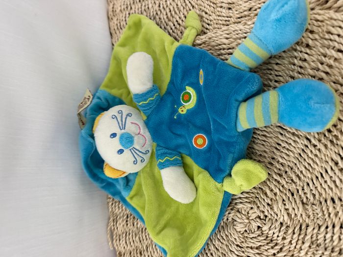 Doudou Chat Plat Carré Bleu et Vert Nicotoy - photo numéro 4