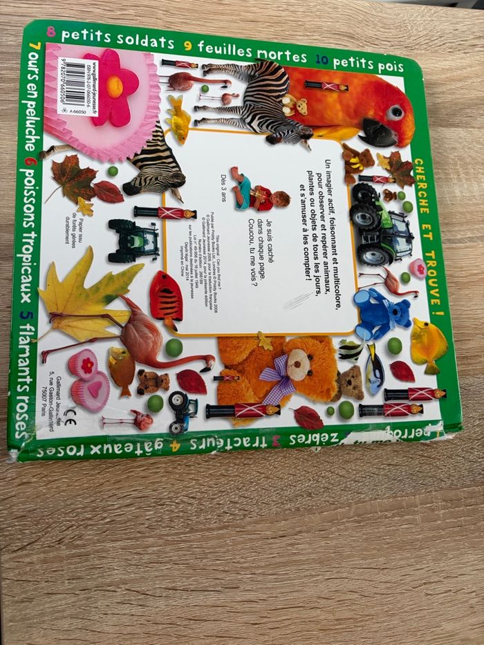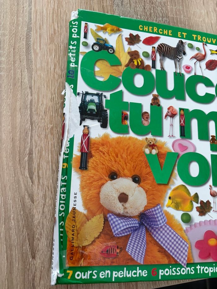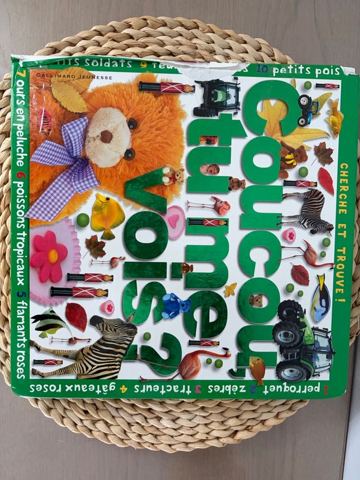Livre qui est en bon état (mais scotché à plusieurs endroits voir photos) Un livre foisonnant d'images multicolores pour observer et repérer animaux, plantes ou objets de tous les jours, et s'amuser à les compter ! Je suis caché dans chaque page. Coucou, tu me vois ? Pour les plus jeunes, incomparable livre d'éveil foisonnant de belles photographies multicolores pour s'amuser à observer, repérer et compter les animaux, les plantes ou les objets de tous les jours. Un petit personnage à retrouver dans chaque page ajoute encore à l'attrait irrésistible de ce merveilleux livre d'images. Maison non-fumeur