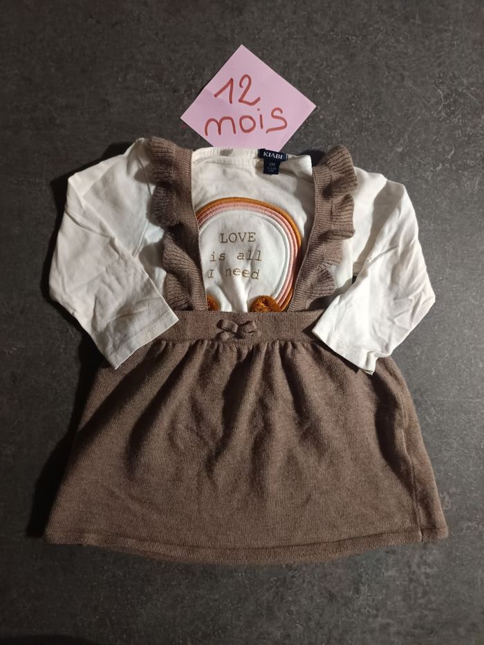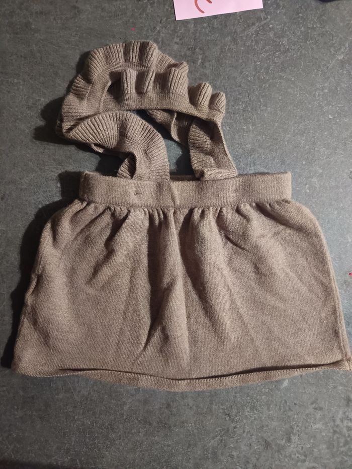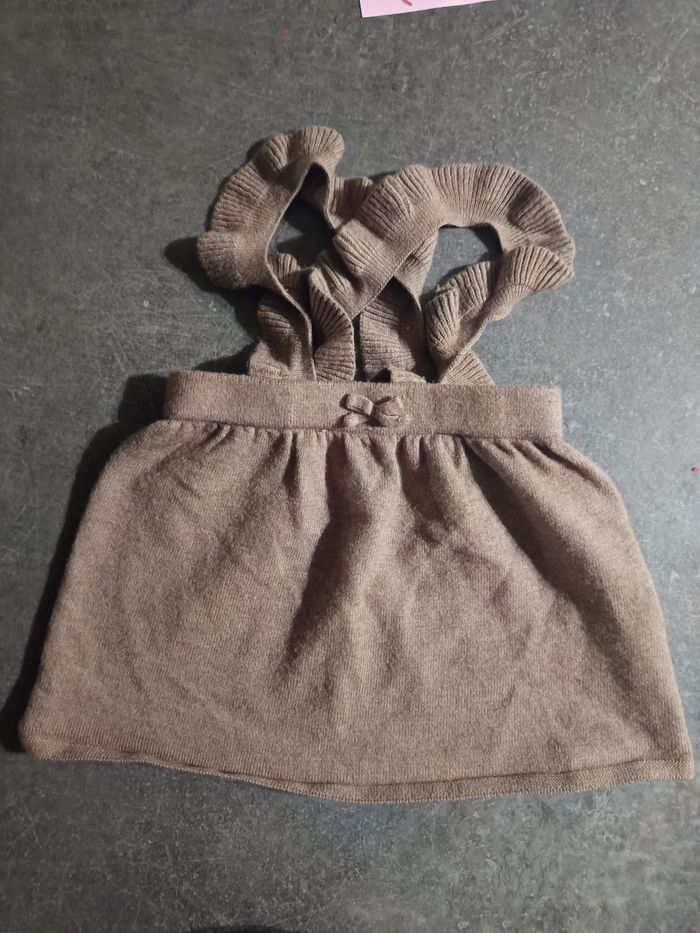 Jolie petite jupe salopette en laine, NEUVE jamais portée ! Je donne le t-shirt avec car il est taché (je ne sais pas si la tâche va partir) Taille 12 mois
