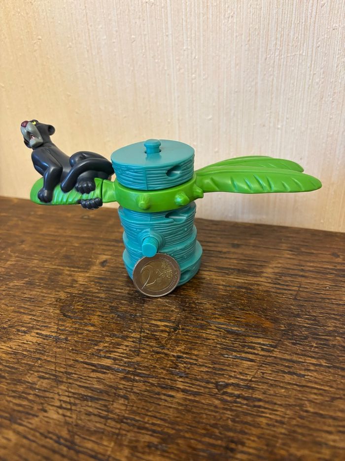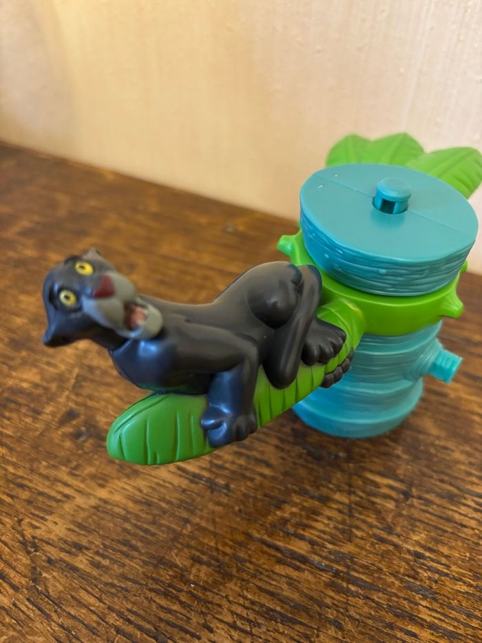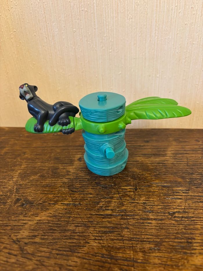 Vend rare figurine vintage « Bagheera » la panthère dans son arbre du dessin animé « Le livre de la jungle » Jouet Happy meal McDo de 2003 En très bon état Fonctionnement : Ok (tourne autour du tronc de l’arbre après remontage). Vendue 5€ Je vends d’autres figurines McDo. N’hésitez pas à regrouper vos achats pour minimiser les frais d’envoi.