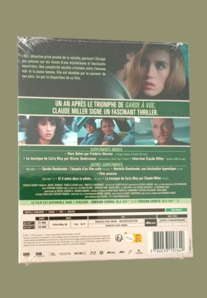 Coffret 2 Blu-ray Mortelle Randonnée (Drame / Thriller) L'inoubliable Thriller de Claude Miller ! ➡️ 2 VERSIONS : BLU-RAY VERSION ORIGINALE CINÉMA (131 minutes) + BLU-RAY VERSION COURTE (100 minutes) ➡️ NEUF SOUS BLISTER Réalisateur :Claude Miller Acteur : Michel Serrault - Isabelle Adjani - Guy Marchand Beauvoir, dit "L’œil", détective privé proche de la retraite, parcourt l’Europe des palaces sur les traces d’une mystérieuse et fascinante meurtrière. Une complicité secrète s’installe entre l’homme mûr et la jeune femme. Elle est obsédée par le souvenir de son père, lui par la disparition de sa fille. TOUS PUBLICS