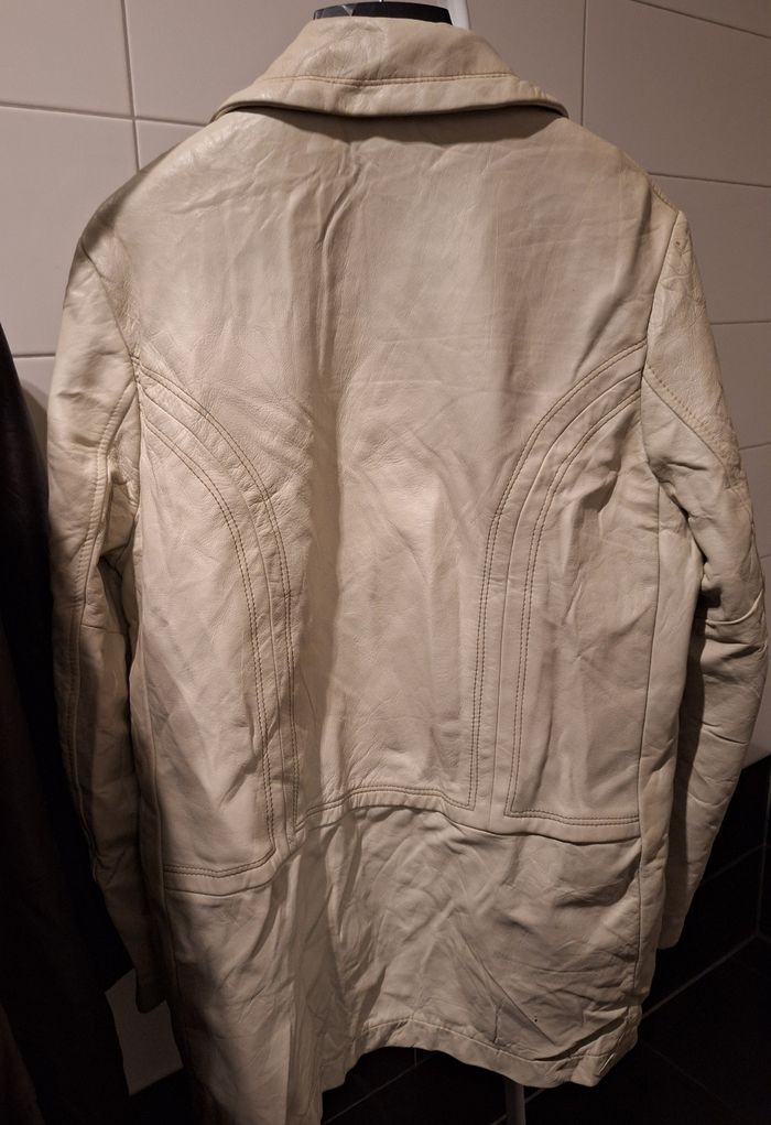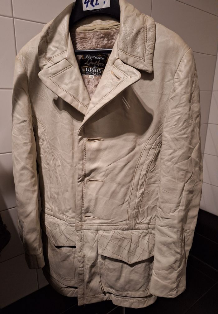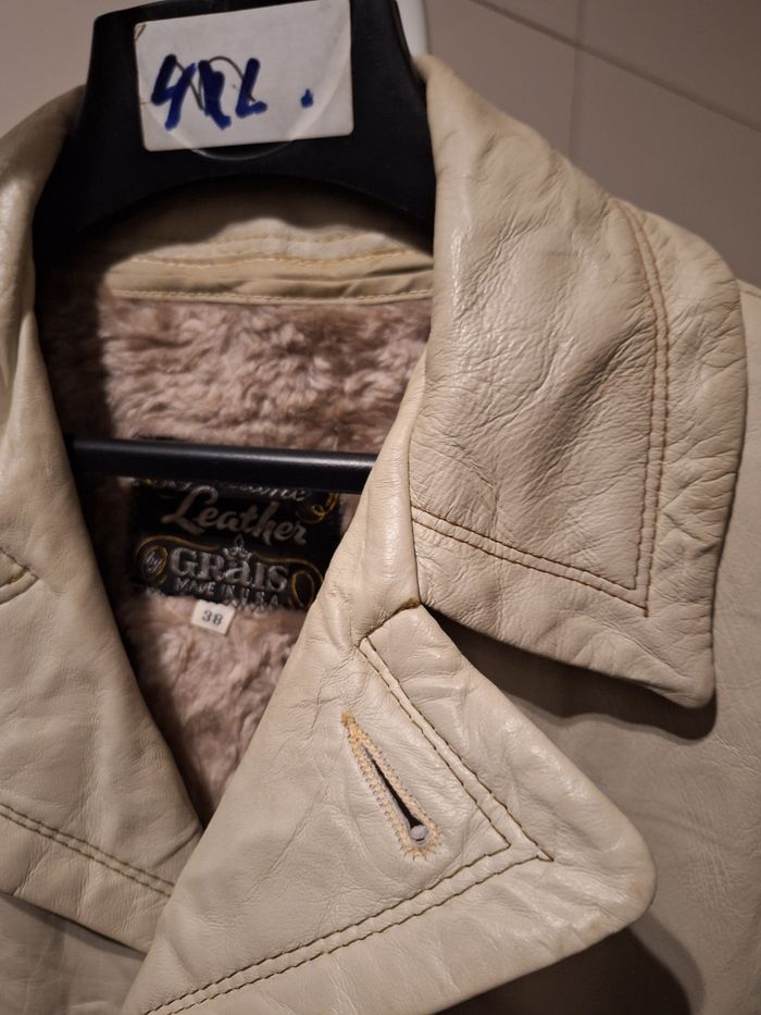 Manteau long en cuir véritable, marque GRAS – Made in USA 🇺🇸 Doublure intérieure moumoute chaude. Style vintage 70s / 80s, col large. Cuir épais, belle patine naturelle. Taille 38 US = S / petit M. Aucun trou, structure parfaite. Pièce rare, idéale hiver & collection. Envoi rapide 📦
