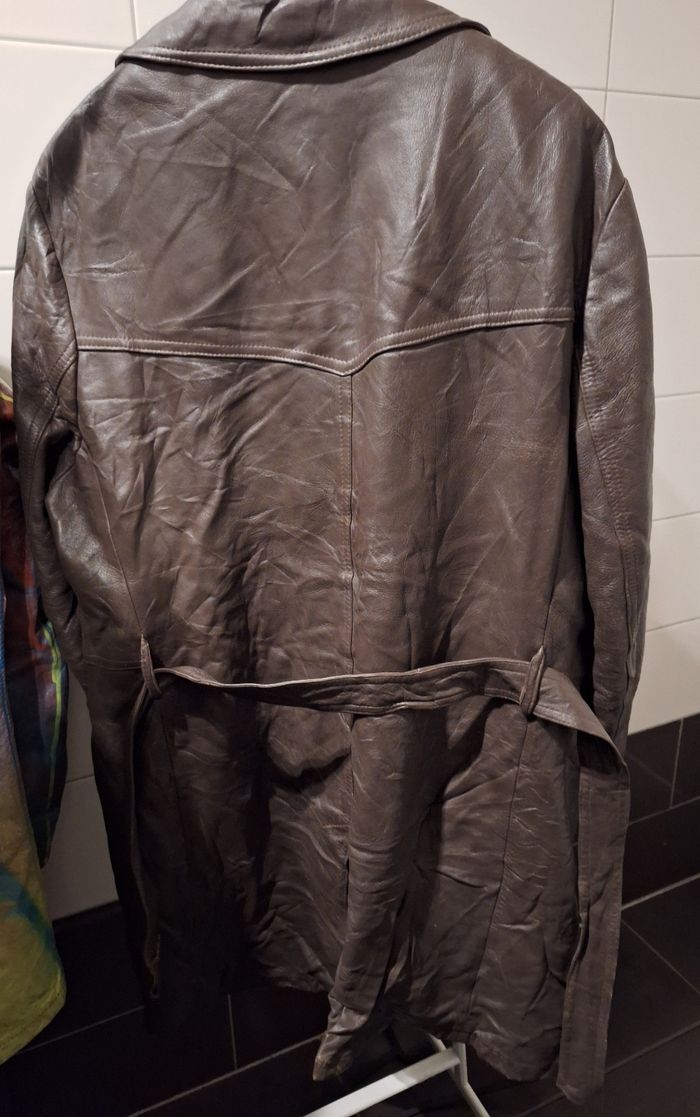 Description PREMIUM optimisée Manteau long en cuir véritable Wrangler Leather, fabrication Made in Canada 🇨🇦 Pièce vintage rare, cuir épais et lourd, qualité premium. Style trench / manteau biker long, look unique. Taille indiquée L – convient M/L. Plis visibles = patine naturelle du cuir vintage. Aucun défaut structurel, prêt à porter. Idéal streetwear, vintage, biker, collection. Envoi rapide et soigné 📦