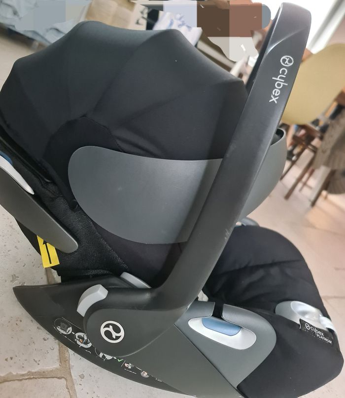 Je vends ce siège auto Cybex Cloud-Z Platinum en très bon état. - Type de produit : Siège auto/cosy de poussette - Marque : Cybex - Modèle : Cloud-Z Platinum - Couleur : Noir - Système de fixation : Isofix ou attache ceinture possible avec les passants. Pas de coup connus, seulement quelques traces de frottement sur le plastique de la capotte du à la vie courante. Peut s'adapter à une yoyo avec adaptateur. Cosy qui s'allonge, le bras de portage possède 3 positions différentes. 2 ailerons sur chaque côté pour une sécurité supplémentaire en voiture. Avec reducteur pour catégorie 0-1.