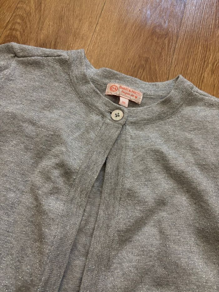 Je vends ce joli gilet argenté de la marque C&A pour fille de 5/6 ans. - Type de produit : Gilet fermeture à un bouton - Taille : 6 ans / 116 cm - Couleur : Argenté / Acier - Matière : coton polyester