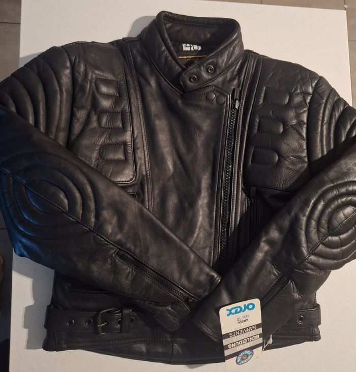 Blouson cuir primium vintage Orex noir neuf avec etiquettes style vintage