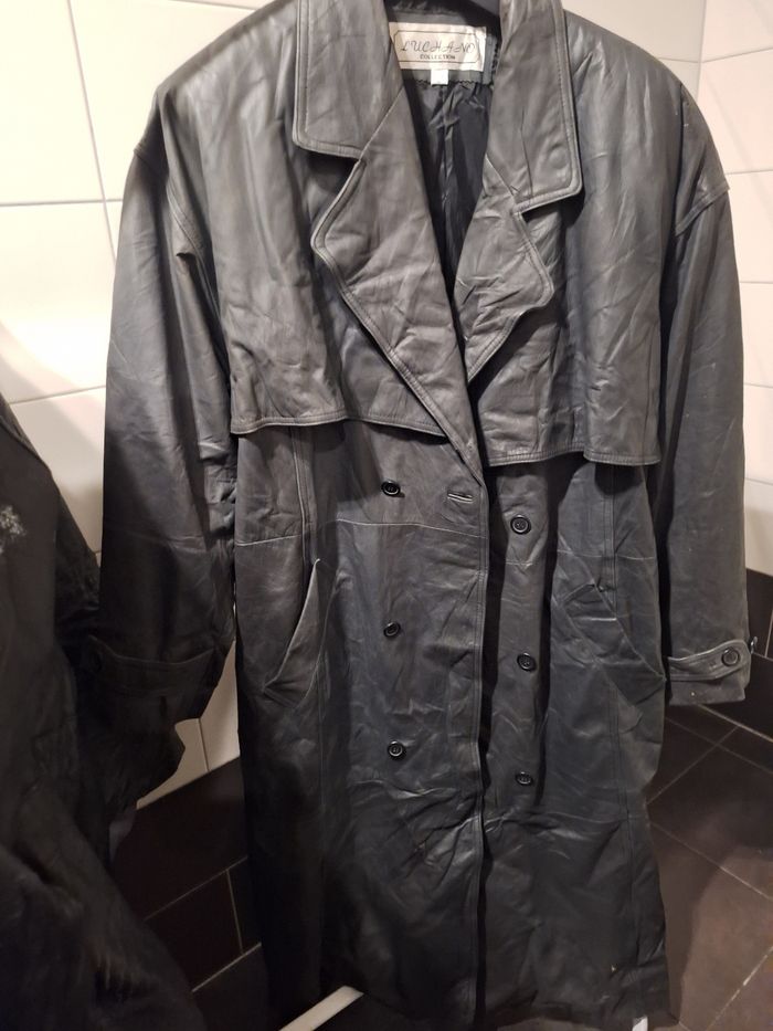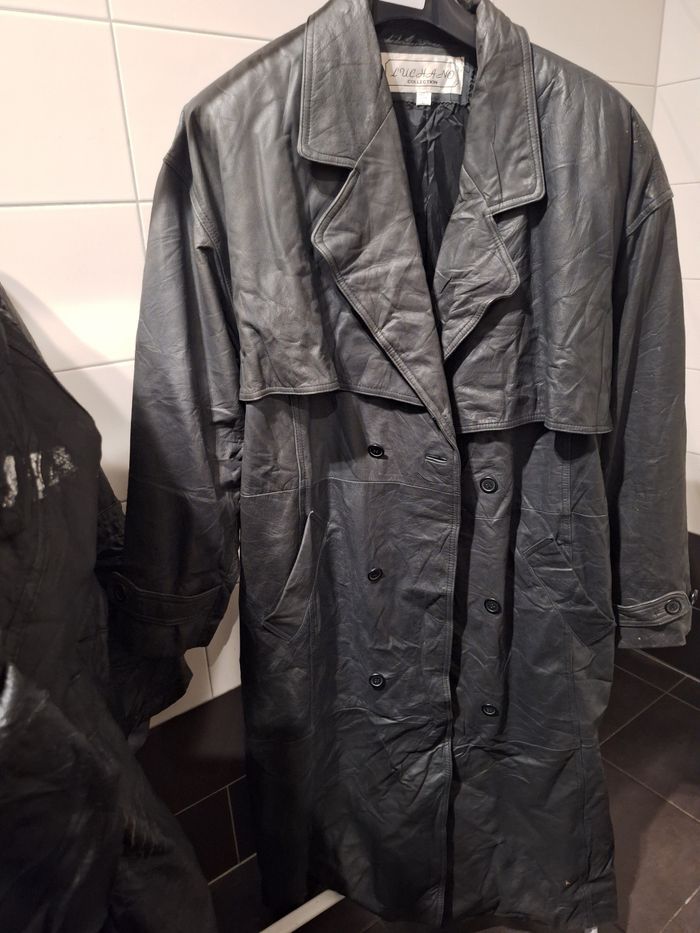 Trench long en cuir véritable noir, style rétro / Matrix. 🆕 Neuf avec étiquettes d’origine Marque : LUCHANO Collection Taille : L (52 EU) Coupe longue, double boutonnage, poches, sangles poignets. Cuir souple, jamais porté. Idéal look streetwear, biker ou vintage. 📦 Envoi rapide – Vendeur sérieux.